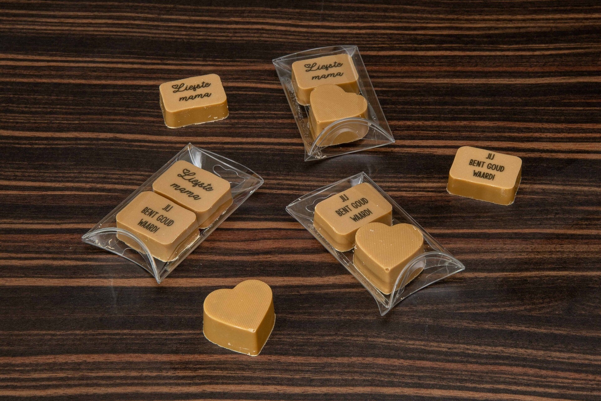 'Gold' pralines met tekst om je cadeau persoonlijk te maken.