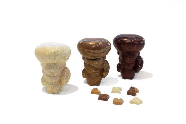 Keuze uit een sint of pietje in witte, melk of pure chocolade.