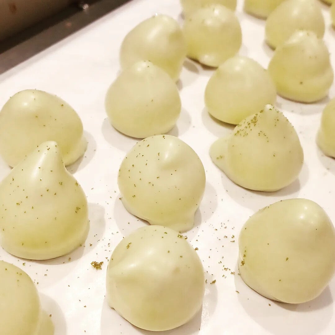 Deze kleine melo-cakes zijn gevuld op basis van champagne en aardbei met een bodem van nougatine ipv een koekje.